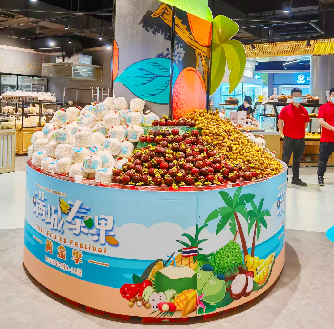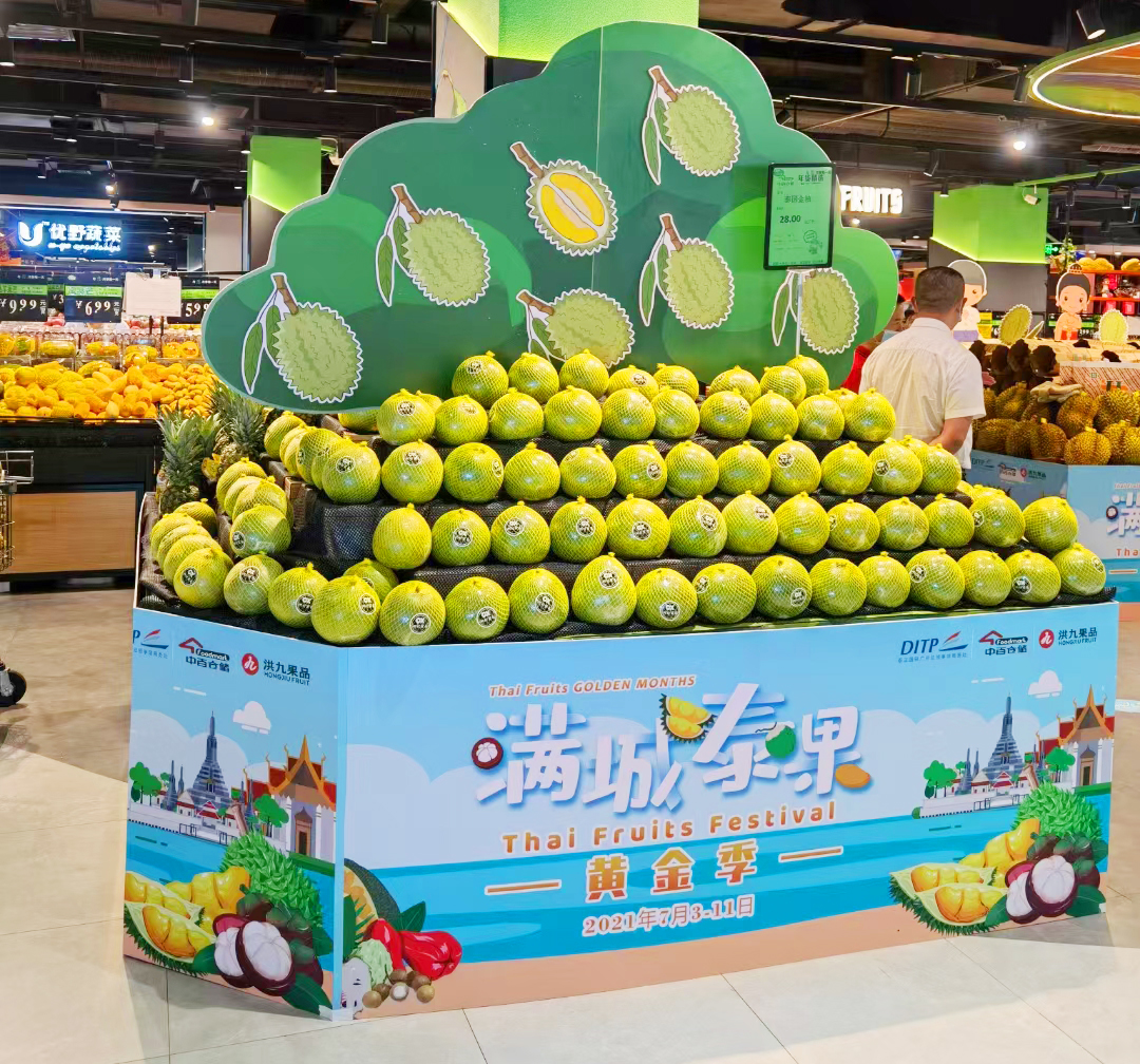 由泰王国驻广州总领事馆商务处联合洪九果品、武汉中百仓储共同举办的“满城泰果黄金季·武汉站”于7月3日至11日在湖北武汉中百仓储超市倾情上线。