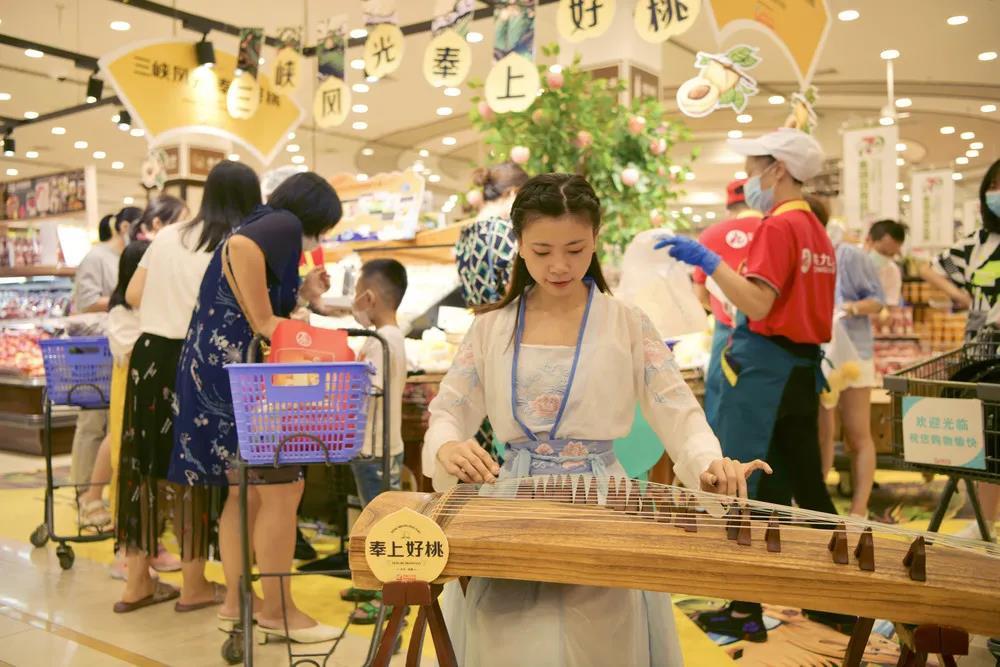 在经典的古筝演奏、DIY蛋挞烘焙场景中,奉上好桃在成都伊藤洋华堂各大卖场果香飘溢,红心闪闪,