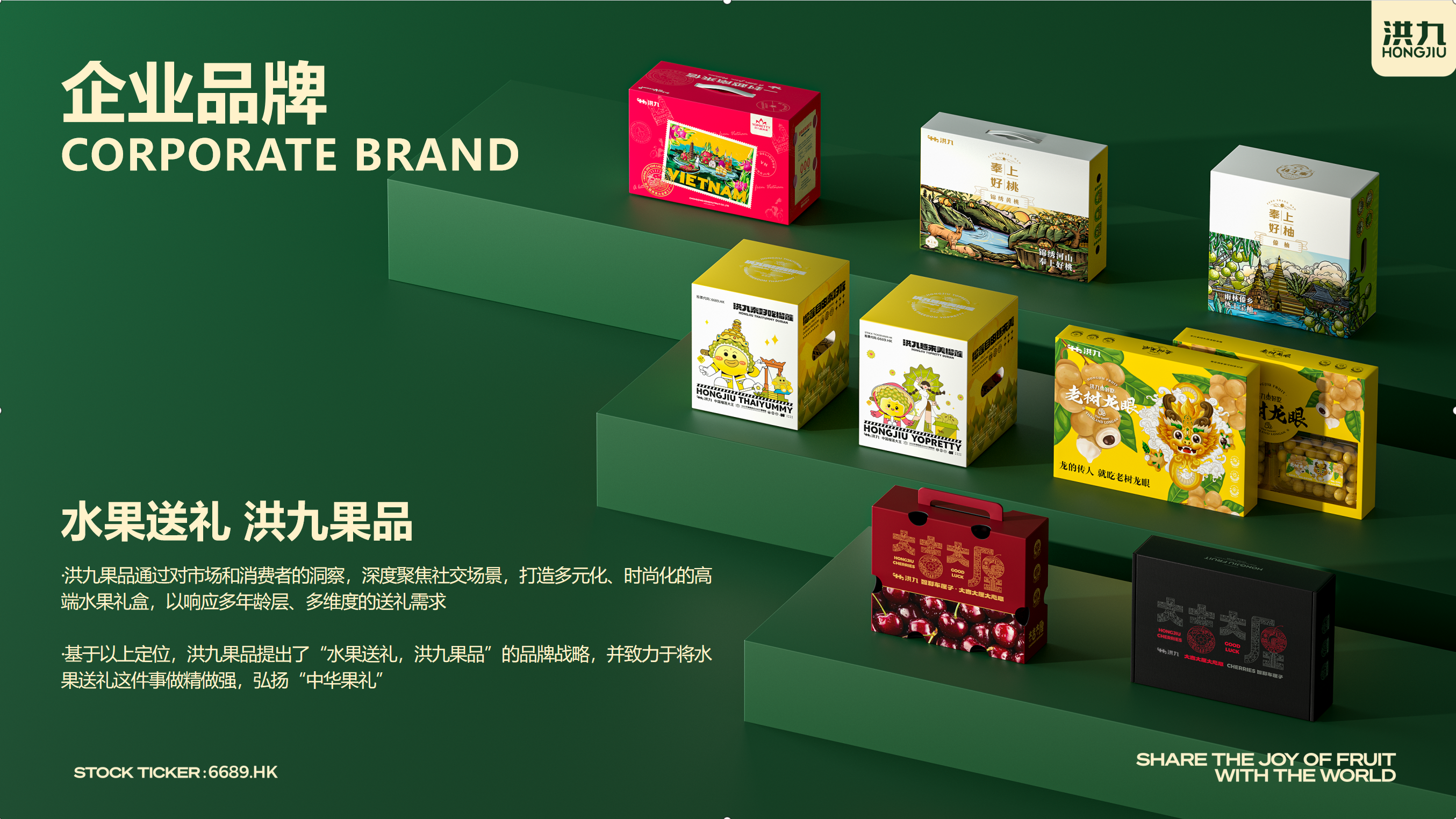 洪九果品坚持多品类、多品牌的战略,持续引领中国水果行业品牌化升级。秉承着“找遍全球,唯有此地”的理念,洪九果品选择全球稀缺优质产区,打造深受消费者认可的品牌鲜果。目前,洪九果品已在榴莲、山竹、龙眼、火龙果等14个主要水果品类中成功打造了18个品牌,并凭借卓越的产品开发能力,不断推出优质的鲜果产品,在消费者心中形成了美味记忆。